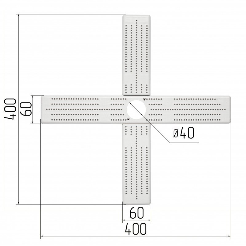 Platforma poprzeczna, zwana krzyżakiem, służy do montażu szyn montażowych żyrandoli o długości do 400 mm, stosowanych przy sufitach napinanych. Mocowana jest do stropu głównego za pomocą obręczy lub płaskich wieszaków do płyt gipsowo-kartonowych, zapewniając solidne i stabilne wsparcie dzięki czterem punktom podparcia.